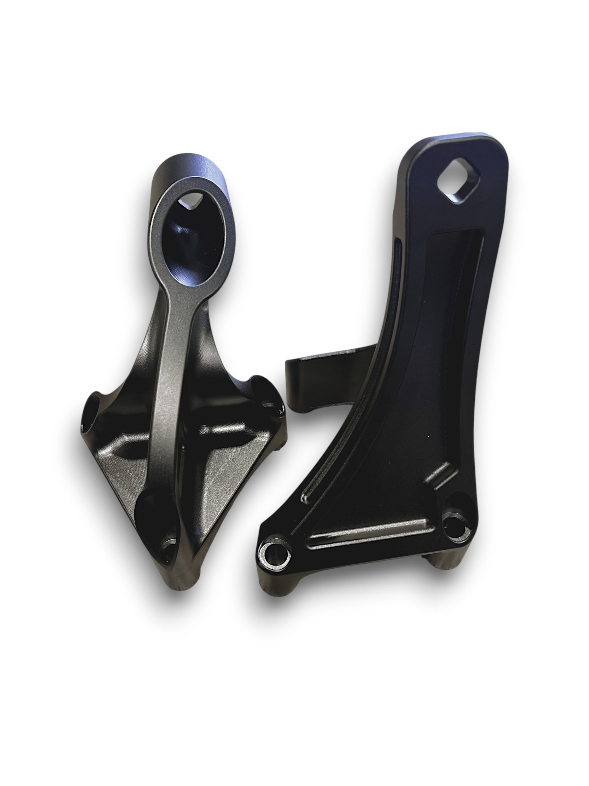 Designed in house and produced from 6061 aluminum, these engine mounting brackets were designed to meet our requirements to fit a B48 engine in an E46 or 36 chassis in the most efficient way possible. Utilizing the factory E46/E36 subframe in conjunction with factory style engine mounts. These can be used with stock rubber, solid or really any mount made for an E46 with M54 or S54. We use the Powerflex Track-Series Tunable Hybrid Engine Mount for our B46 race cars PN# PFF5-4650B