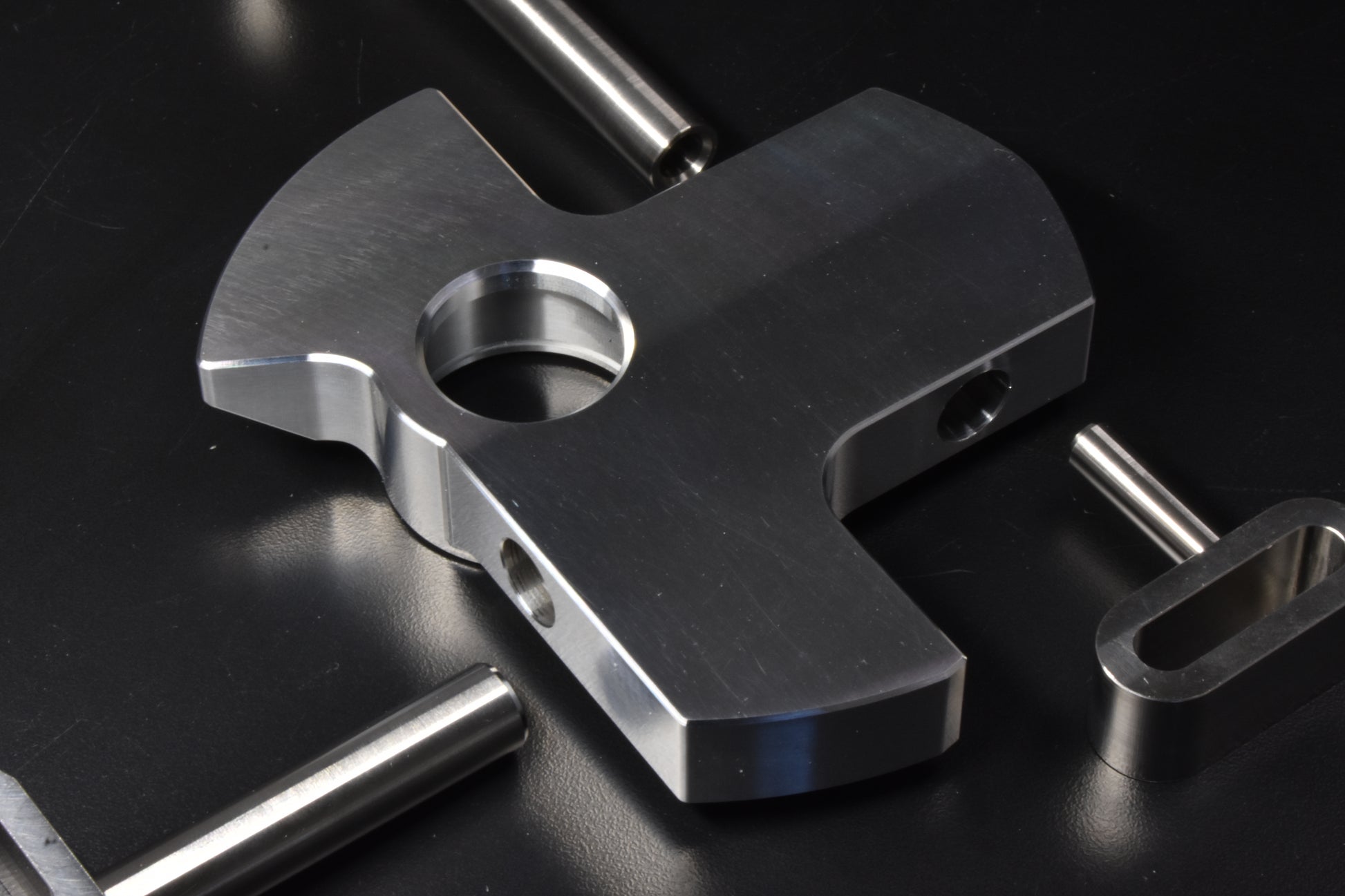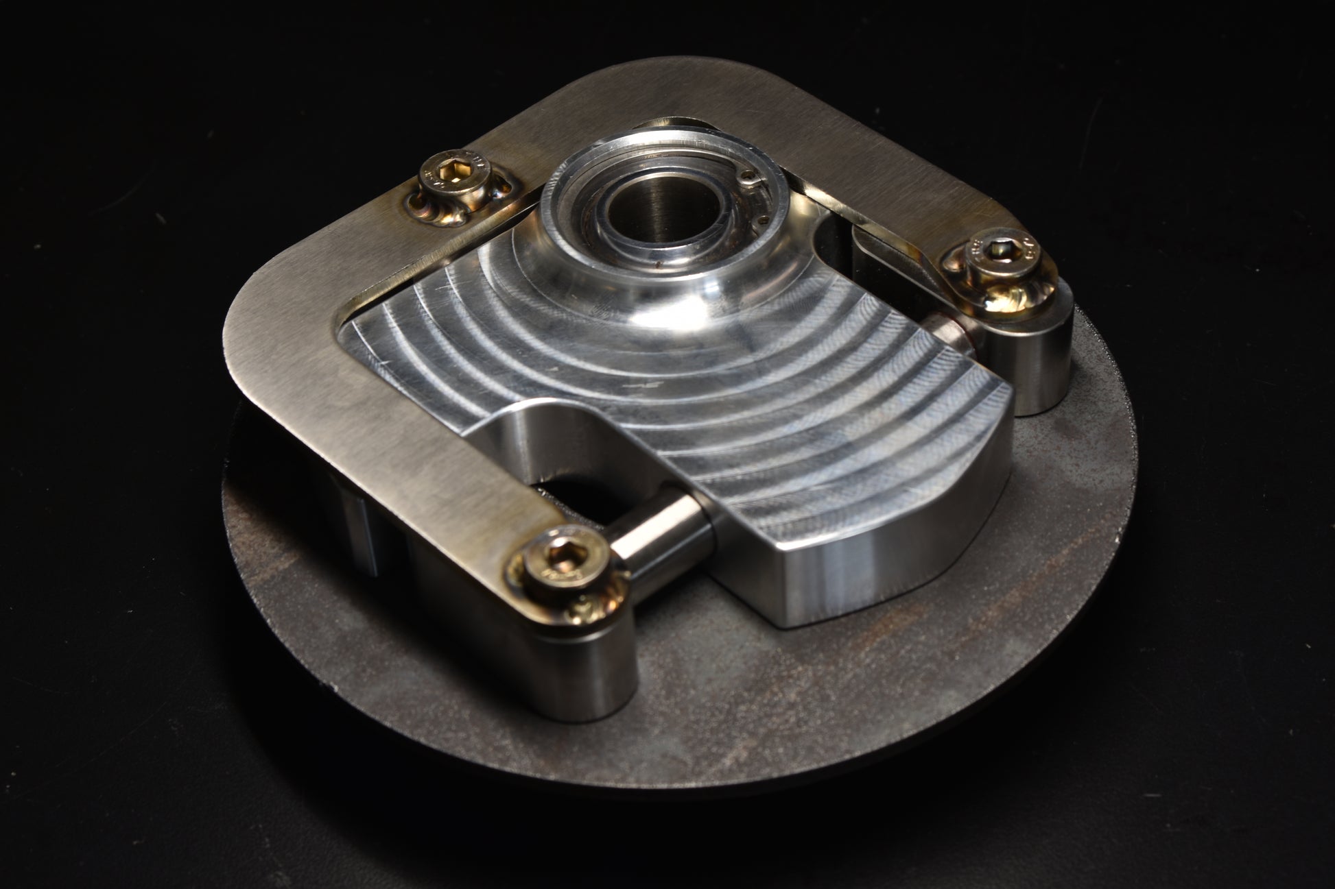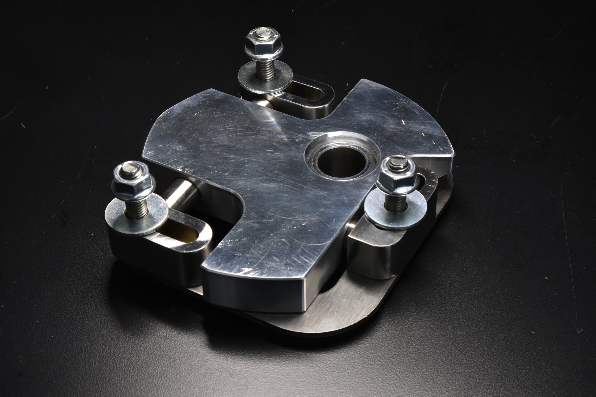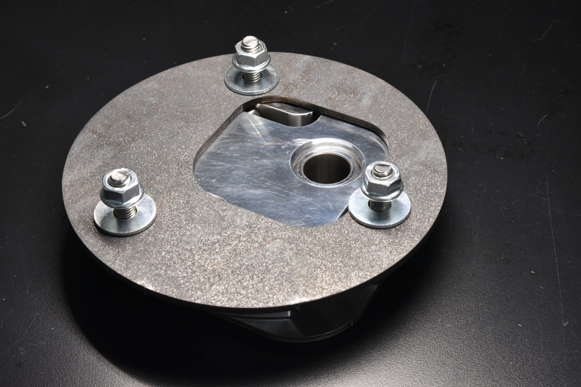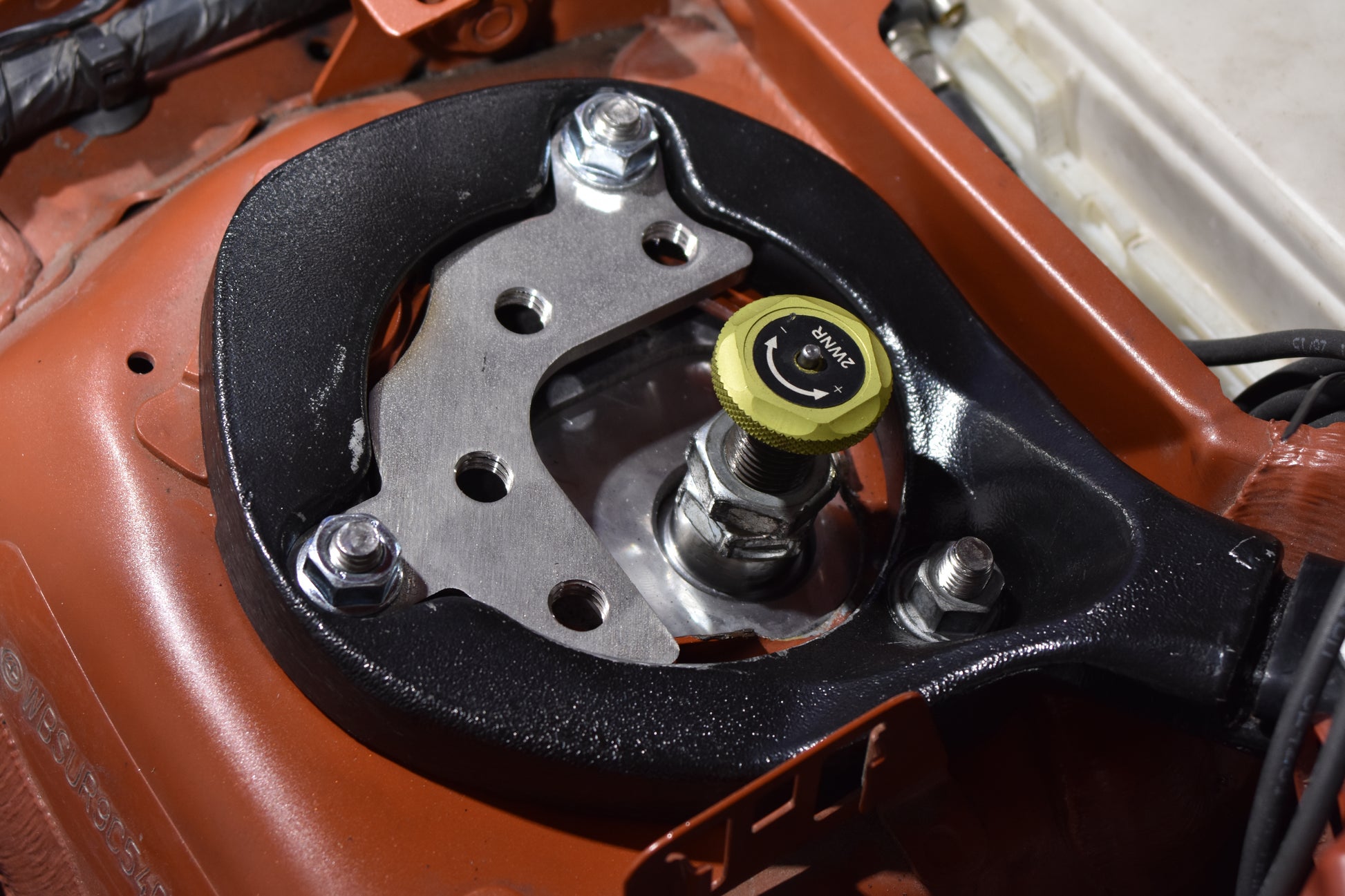 Each camber plate comes with a 0.125" AR500 steel reinforcement plate for added strength and easy adjustment. While this plate may look unfinished we specifically are using the AR500 alloy for its extreme hardness. Common uses for it include vehicle armor and mining equipment. This allows for smooth sliding of the aluminum body when making adjustments and prevents galling.