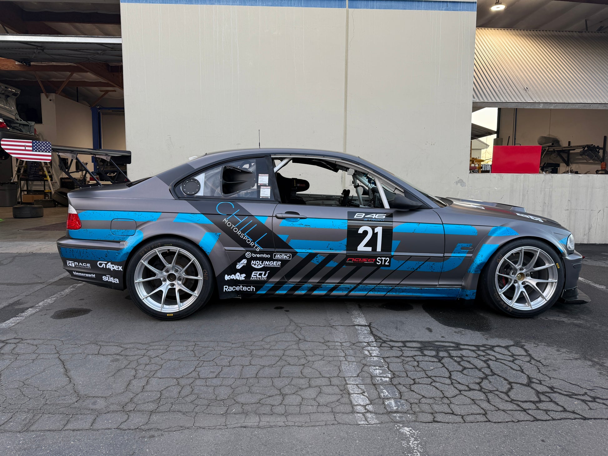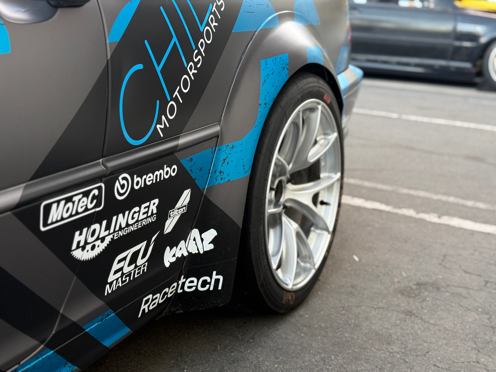 Designed in-house to meet our requirements when we needed something a little different than what was on the market. We did many CAD revisions followed by 3D printed prototypes to get these flares to look just right and match the body perfectly. These were designed for our B46 race cars to look great and be easy to install. They solve a number of fitment issues we had with other flares and allow for a larger tire fitment. We have started bonding these instead of riveting and so far they have held up great on the race track.