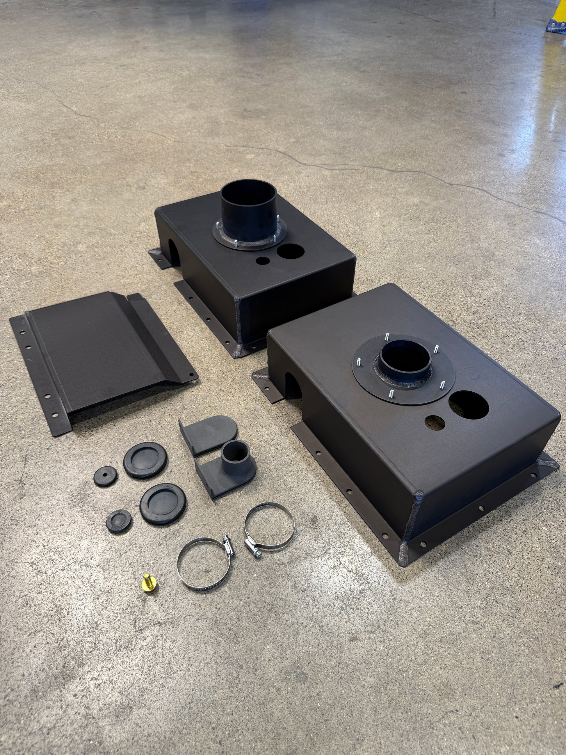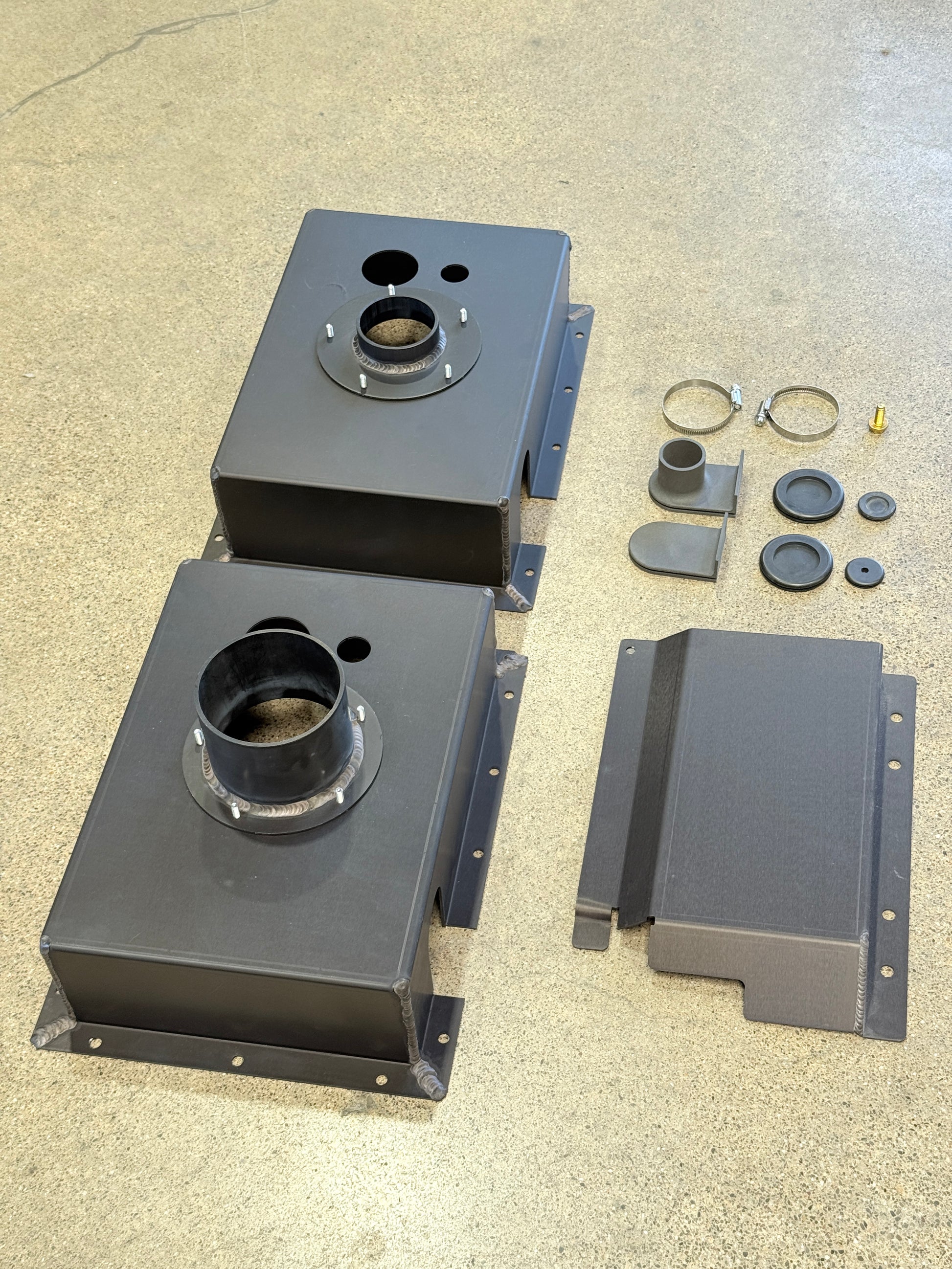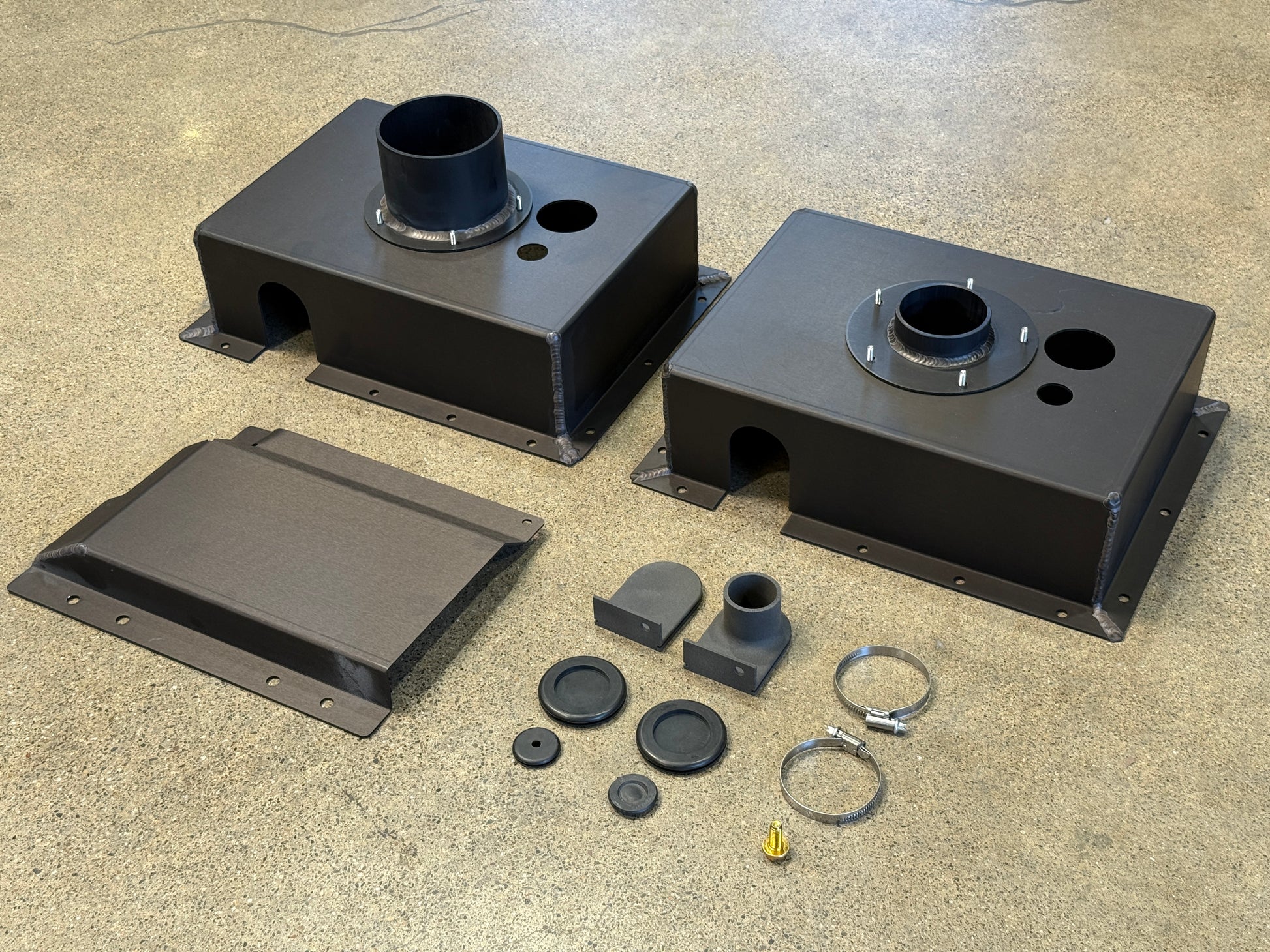 - Pre-made anodized aluminum boxes with pass throughs for wiring, vent hose, fill hose.