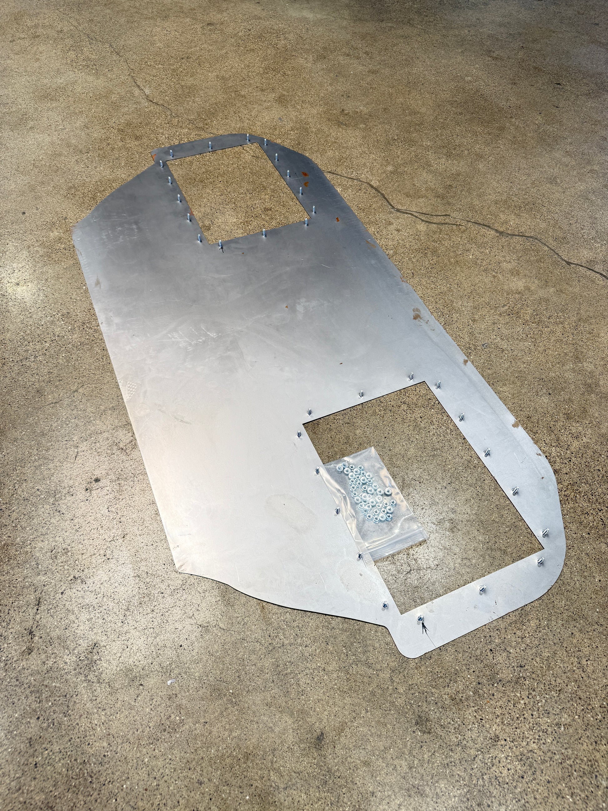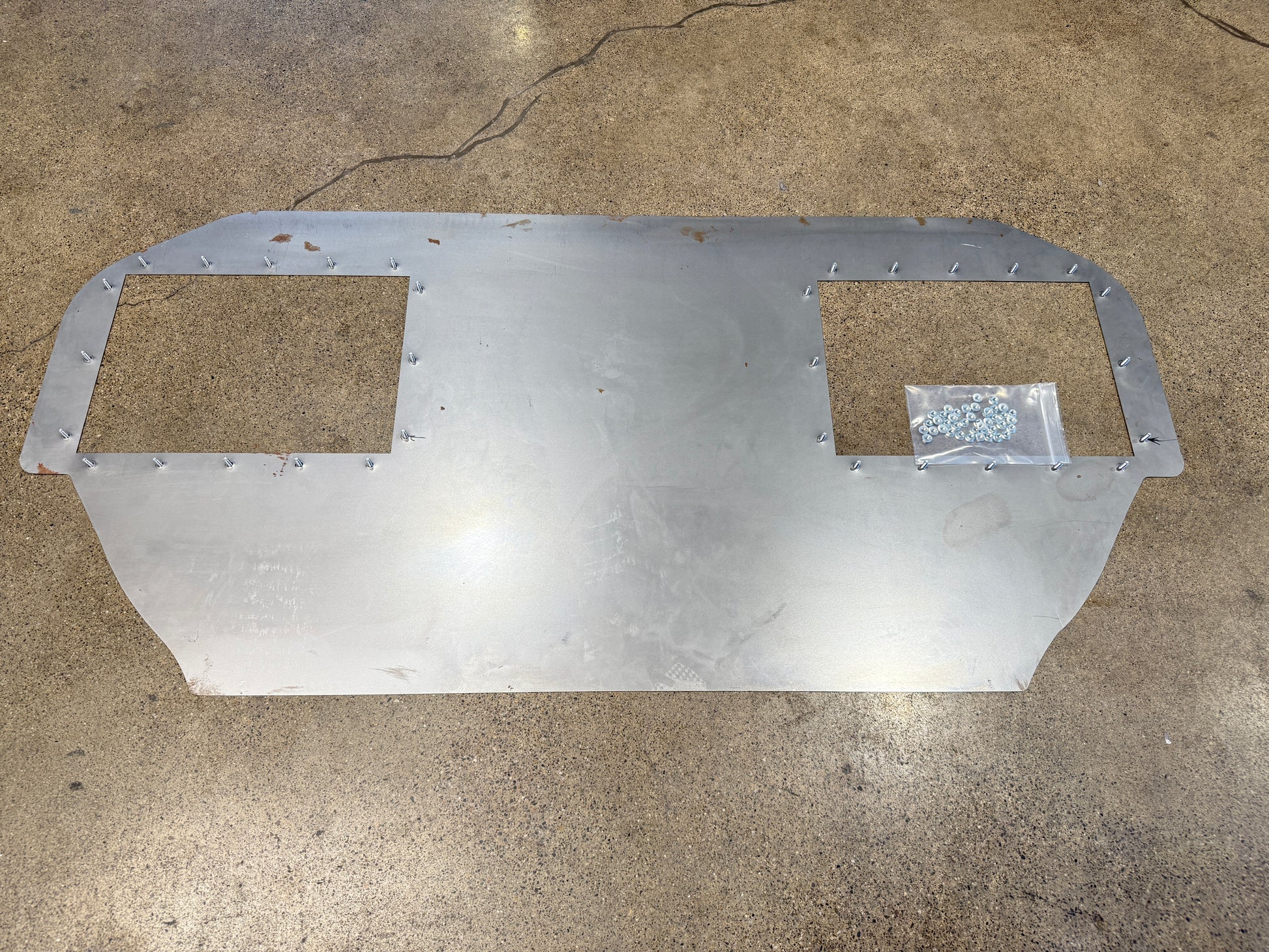 - Laser cut steel seat cover to be welded in to raise the rear seat up. Includes preinstalled welded studs for fuel pump cover boxes.