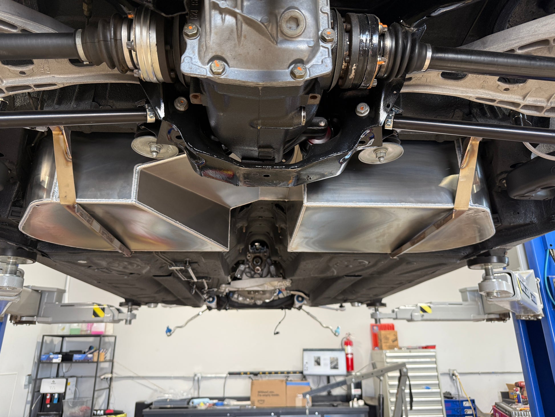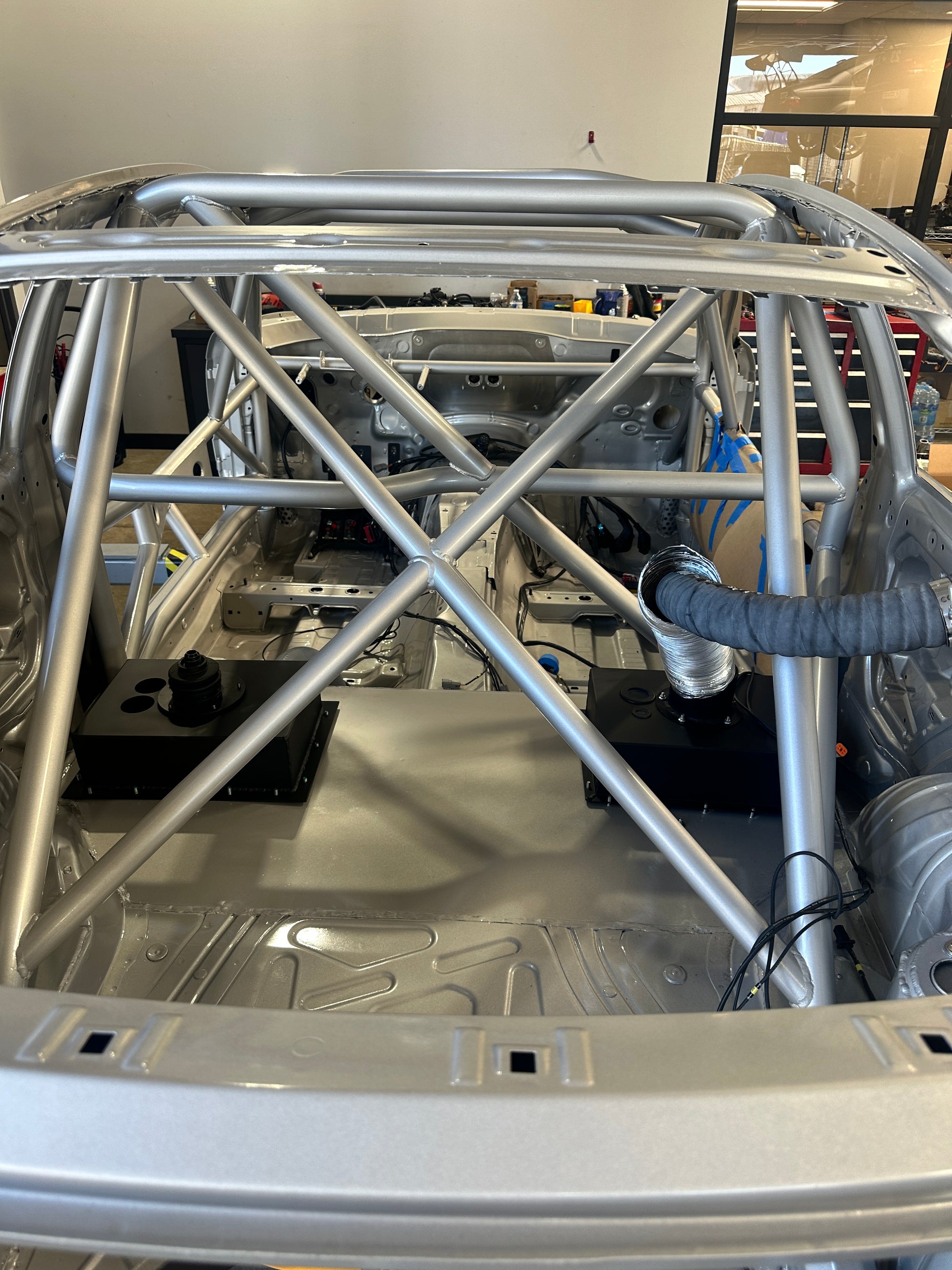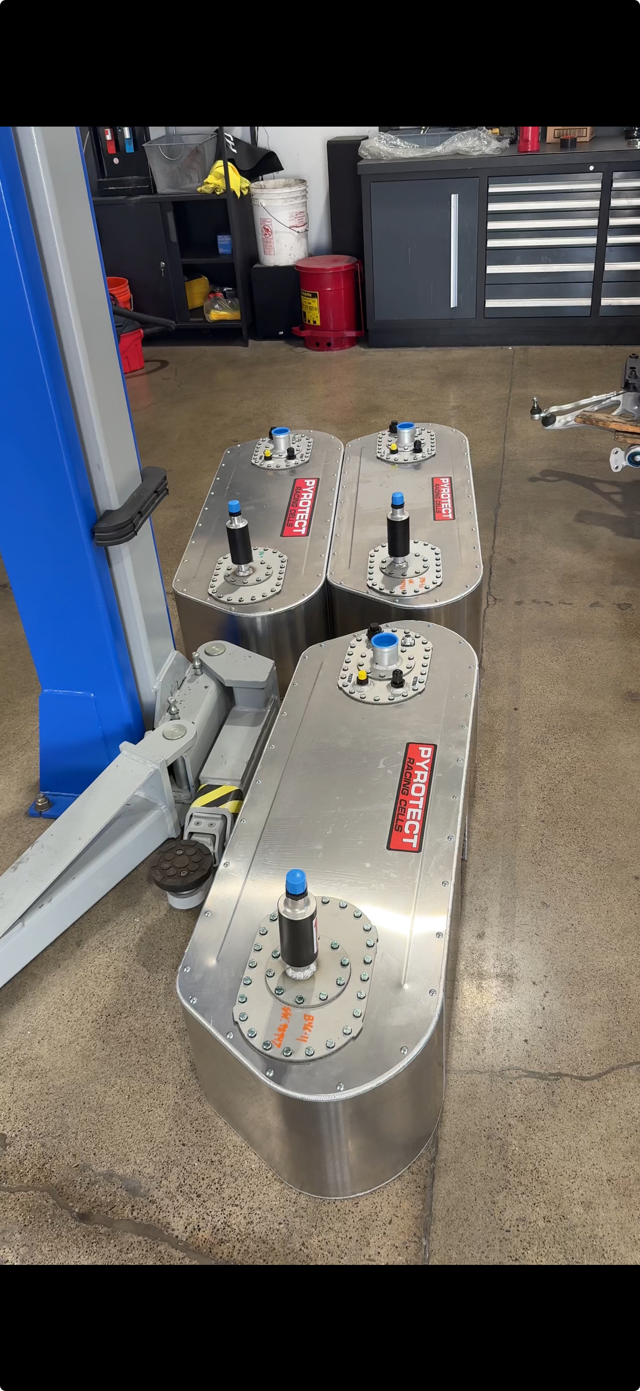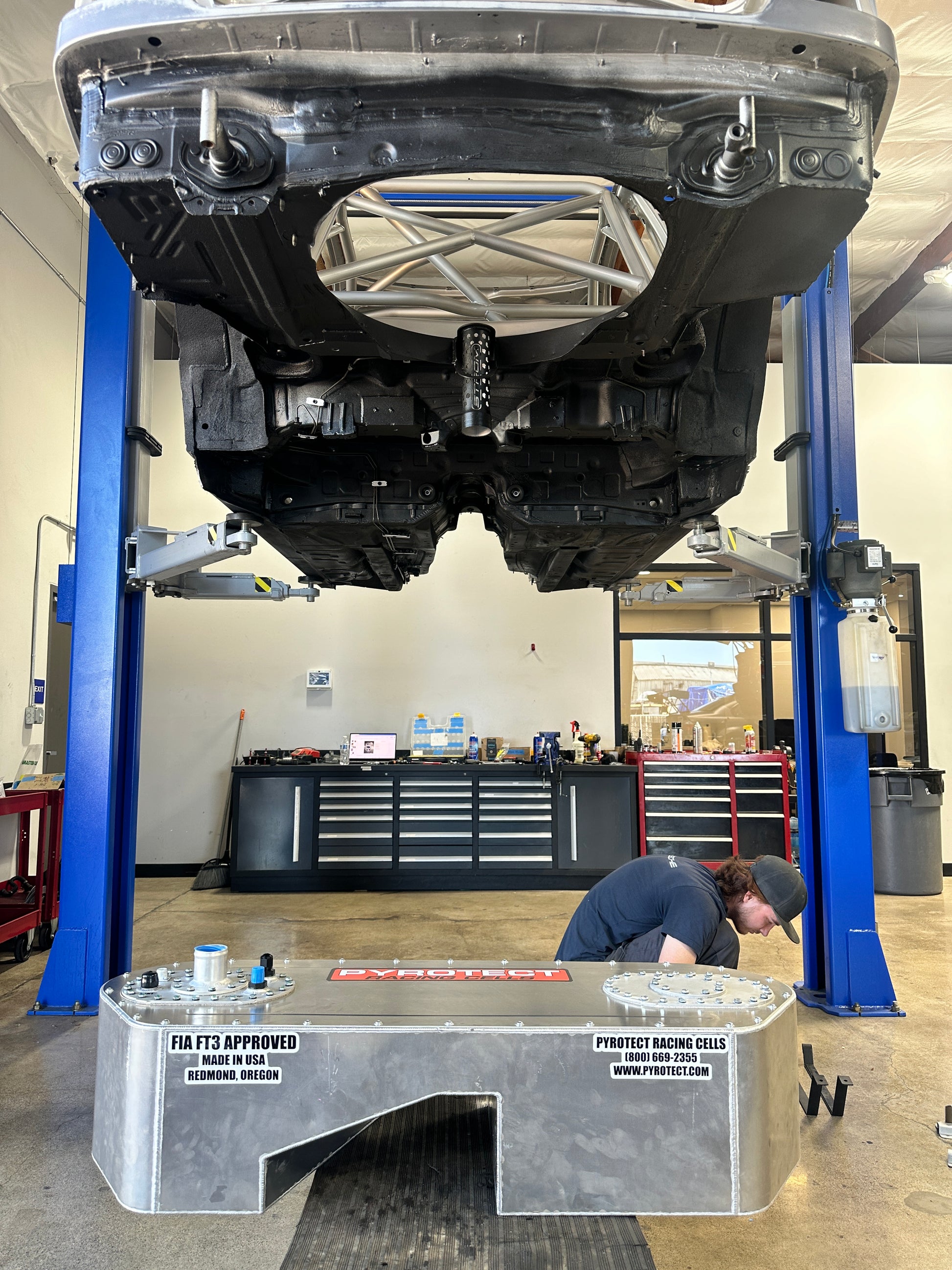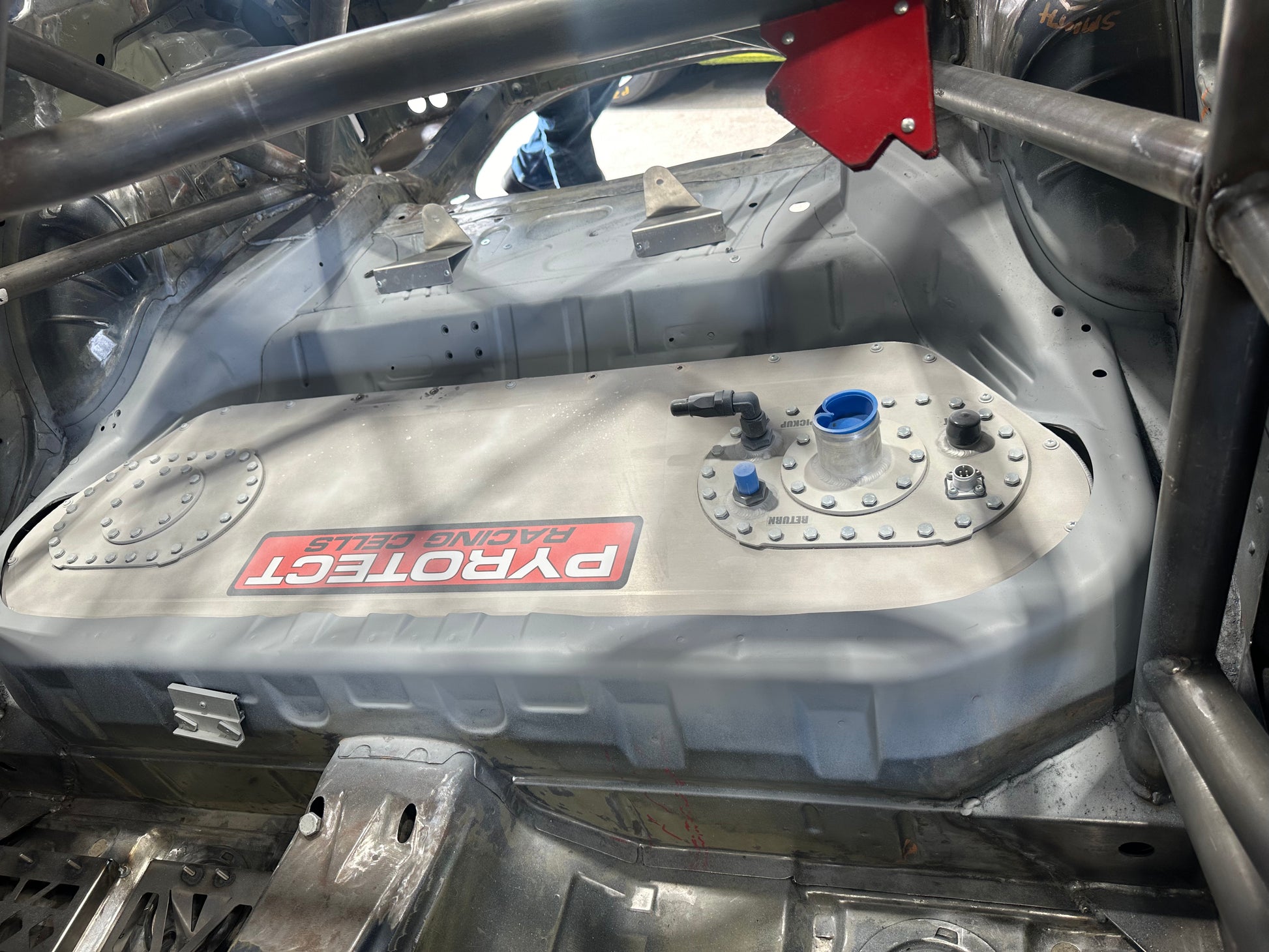 Designed in house for our B46 Race Car and manufactured by Pyrotect. We designed this cell to mount perfectly in the center of the car and leave room for the driveshaft and exhaust.