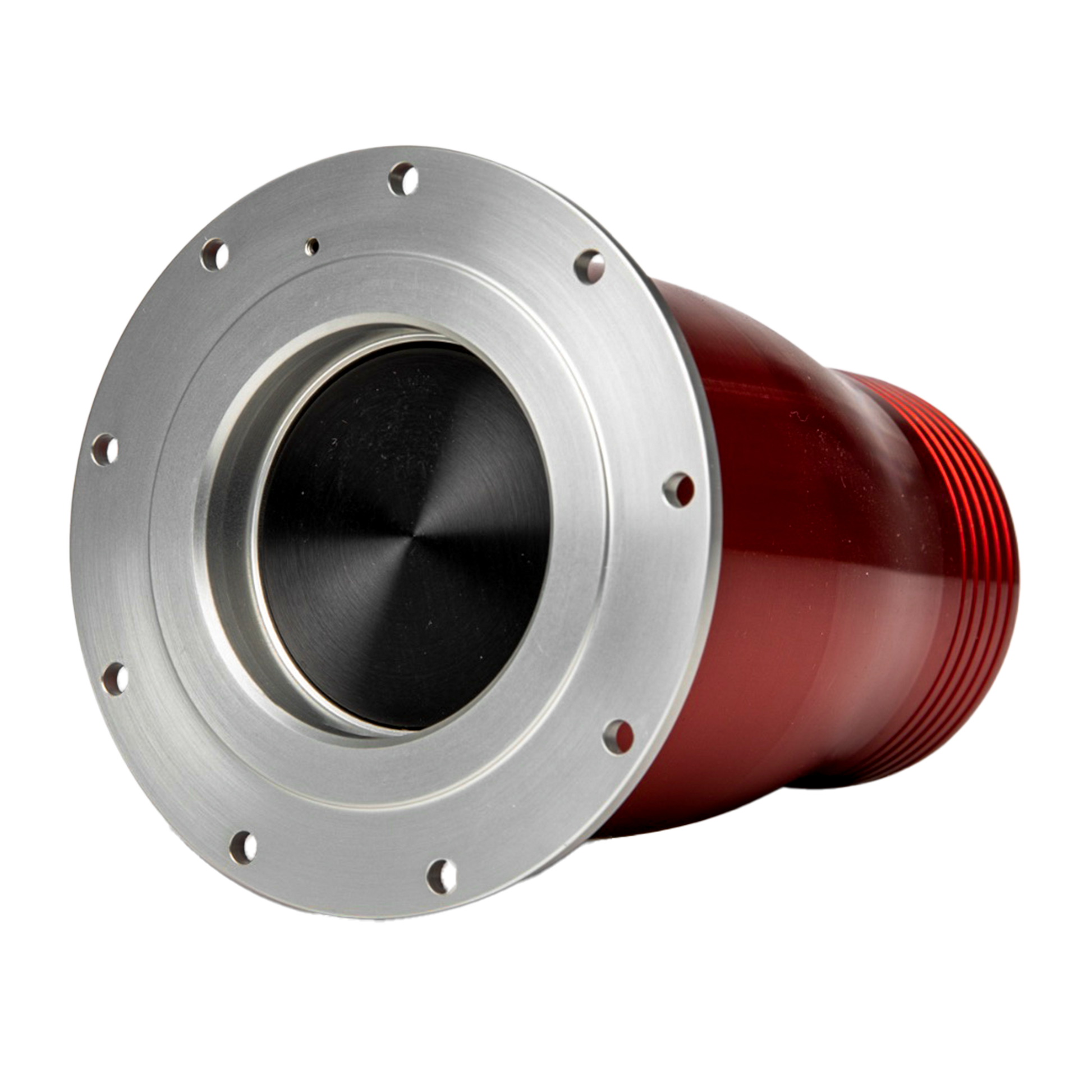 RedHead PP20 Remote Mount Receiver with 4.0 inch bolt circle diameter. 9 Hole configuration designed for #10 attachment fasteners. Billet machined aluminum bulb with 2.25” hose barb connection.