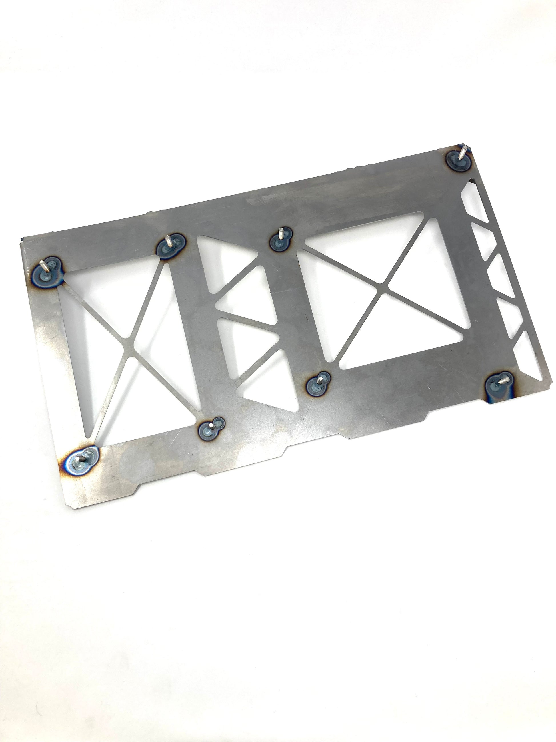 Weld in plate to be able to mount various electronics on a flat surface. Generally combined with our 99.00029 PMU stand off mount and 99.00028 Motec ECU stand off mount.